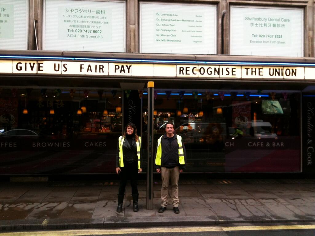 Walking through Soho last week, you may have noticed a unique double billing advertised at a Curzon cinema. There, spelled out in those iconic backlit letters above the entrance, were the words ‘Give Us Fair Pay’ and ‘Recognise the Union’. What better way for fed-up and exploited cinema workers to express themselves? (Read on at Pure Movies)